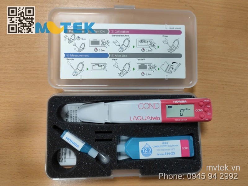 2 pin CR2032 / 1 pipet / Hướng dẫn sử dụng / Hướng dẫn nhanh / Hộp đựng / Bộ dung dịch chuẩn độ dẫn 14mL (1413 μS/cm & 12.88