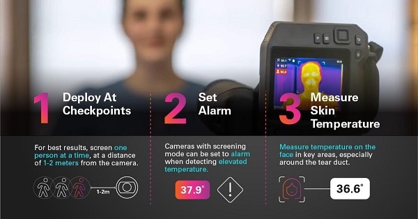 Thiết bị giúp phát hiện người có nhiệt độ cao (trên 38°C), từ đó tiến hành kiểm tra chuyên sâu như xét nghiệm PCR.