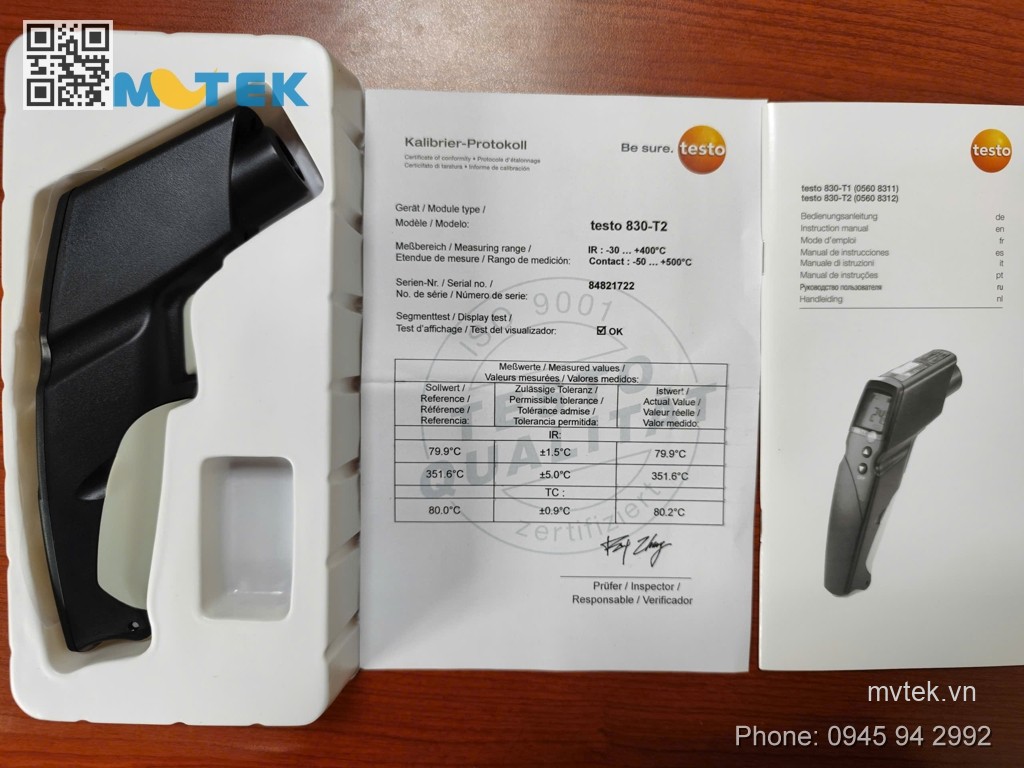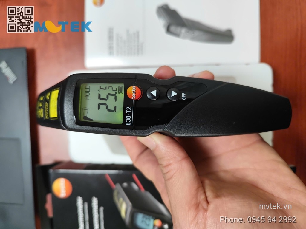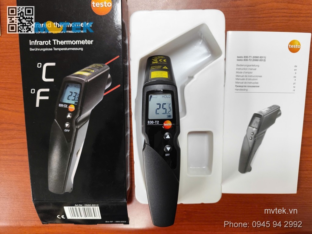 Phụ kiện kèm theo: Máy chính testo 830-T2 và pin.