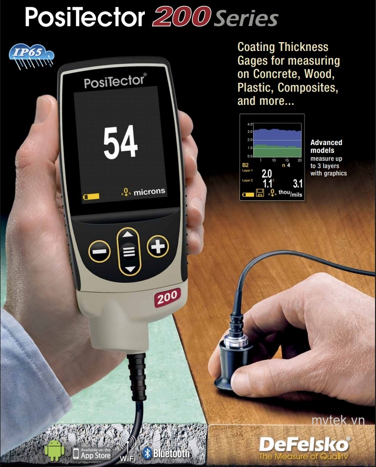 Máy đo độ dày lớp PU, Cao su tổng hợp, Polyme siêu dầy Defelsko PosiTector 200D3 (nền bê tông)